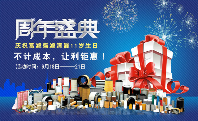 为庆祝富滤盛滤清器11岁生日,感谢各界新老客户的关心和重视,支持和厚爱,经研究决定:不计成本,让利钜惠!
